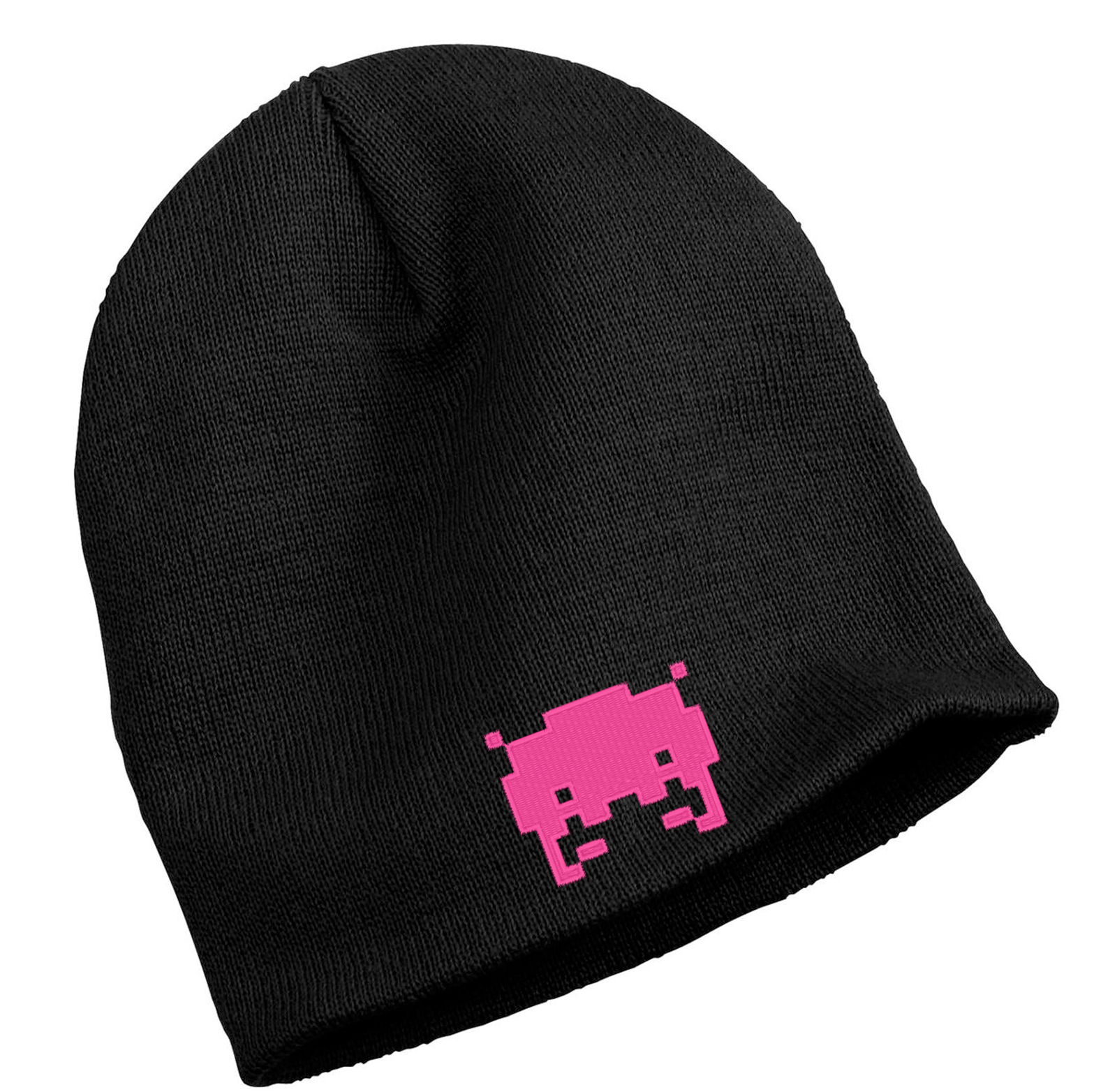 The black Cyber-NY alien fitted knit cap is a standout for everyday Winter-wear! Its snug fit provides warmth and comfort, while the 100% acrylic knit is light and breathable. This cap is a modern take on the classic knit toboggan without the extra bulk of a heavier, more traditional fit. It comes with our classic pink alien embroidered on the front.