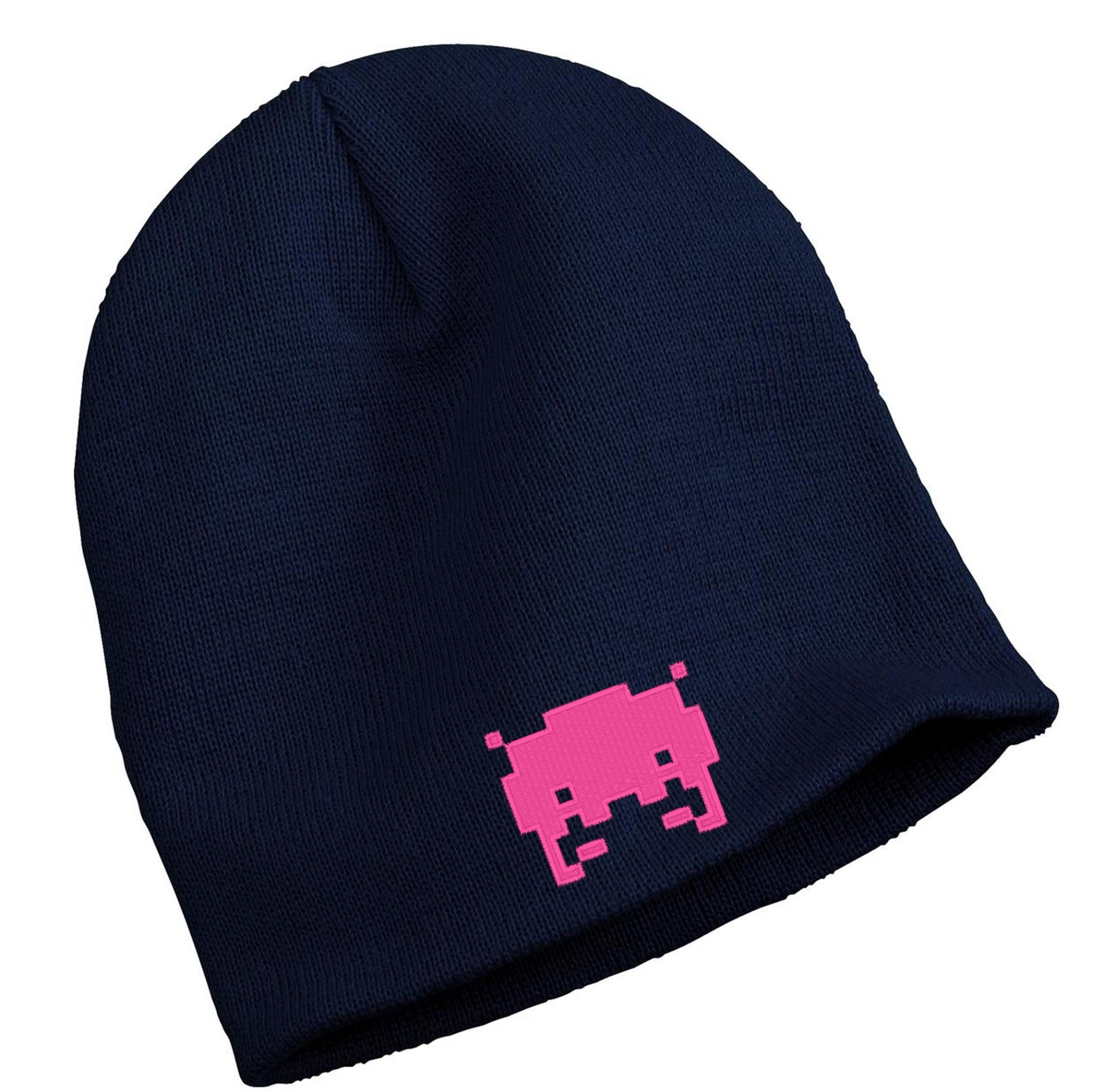 The blue Cyber-NY alien fitted knit cap is a standout for everyday Winter-wear! Its snug fit provides warmth and comfort, while the 100% acrylic knit is light and breathable. This cap is a modern take on the classic knit toboggan without the extra bulk of a heavier, more traditional fit. It comes with our classic pink alien embroidered on the front.